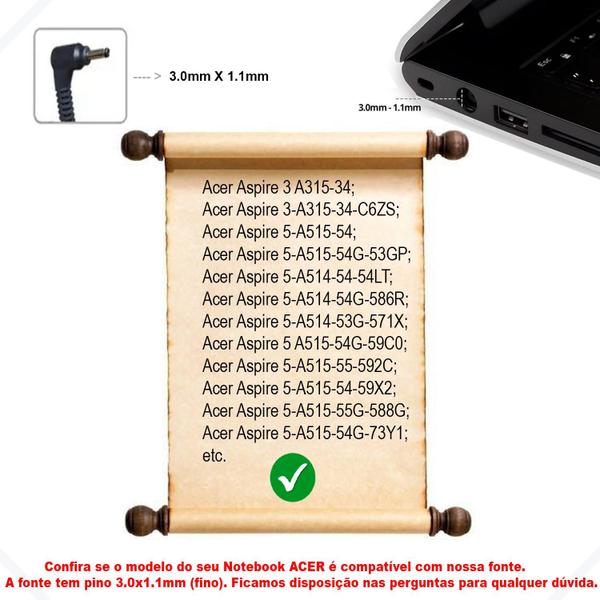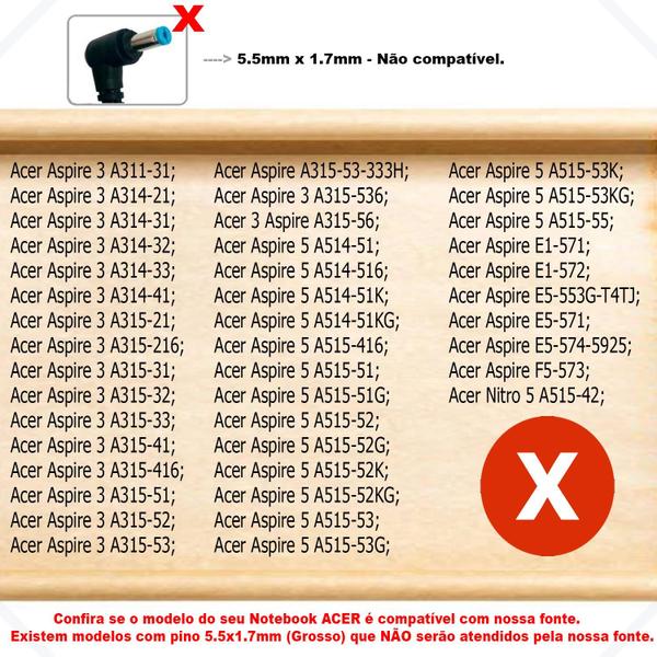 Fonte Carregador Para Acer Aspire 19V 3,42A – 65W