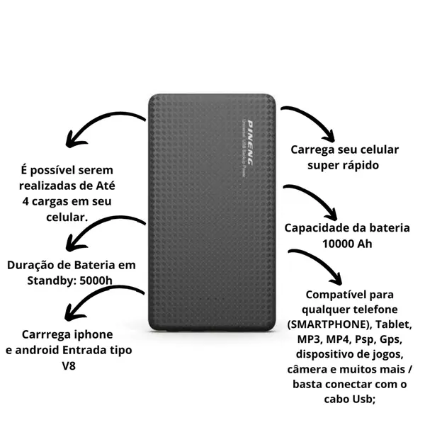 Carregador Portátil Turbo Power Bank 10.000mah Universal - Pineng