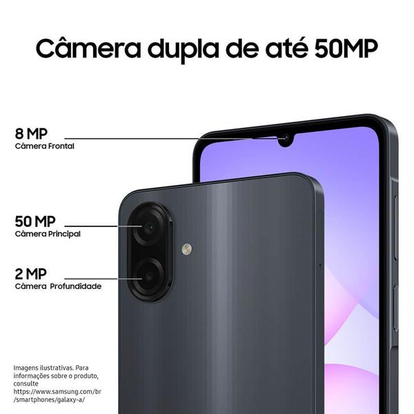 Celular Samsung Galaxy A07, 256GB, 8GB de RAM + 8GB RAM Plus, Câmera Traseira dupla de até 50MP, Câmera Frontal de 8MP, Tela de 6.7", Processador Poderoso Octa-Core (6nm), Android 15 com 6 atualizações, Certificado IP54 (resistência à água e poeira), Bateria de 5000mAh,, Dual Chip.