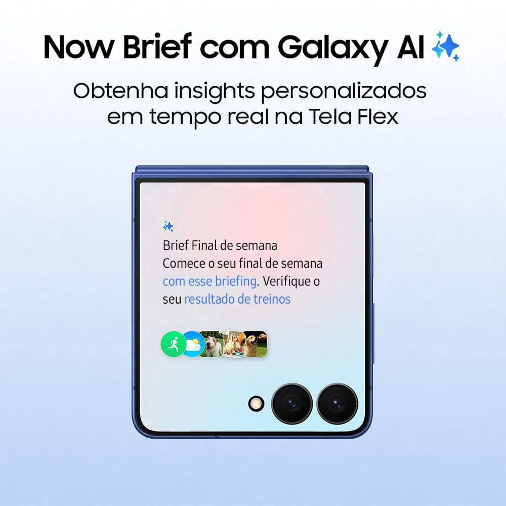 Celular samsung galaxy z flip7 com tela dobrável de 6.9” amoled dinâmico 2x (interno) e 4.1” amoled (externo), 512gb, 12gb de ram, câmera dupla traseira de 50mp (dual pixel, ois) + 12mp (ultra wide), galaxy ai, bateria de 4300mah, android 16 samsung apresenta o novo galaxy z flip7, o novo smartphone dobrável com novo design icônico, refinado. O galaxy z flip mais fino de todos os tempos, para uma pegada mais confortável e melhor portabilidade.o galaxy z flip conta com uma tela flex de 4,1”, tela maior, com moldura fina que combina recursos inteligentes, incluindo a inteligência artificial, além de muito estilo. A sua câmera dupla de até 50mp, permite que você tire lindas selfies mantendo cores e texturas naturais em diferentes ângulos utilizando a flexcam. Você também pode criar seus próprios filtros direto da sua galeria. O galaxy z flip7 garante diversas possibilidades para que as suas fotos fiquem de outro nível, junto com mecanismos do galaxy ia, auto zoom e temporizador virtual. o zoom rocker permite que você controle o zoom com uma mão e o provisual engine de última geração captura seus momentos com nitidez impressionante, realçando detalhes mais finos para fotos e vídeos mais nítidos. O galaxy z flip7 te acompanha em todos os momentos com sua bateria de longa duração. A nova bateria de 4.300 mah oferece a você o poder de fazer o que ama. É a maior bateria já vista em um z flip e suporta carregamento super-rápido de até 25w. o gemini e gemini live, ferramentas de ai do google, estão presentes no seu galaxy z flip7. Com a ação integrada entra aplicativos, você pode fazer múltiplas tarefas sem trocar de aplicativos. O gemini live conta com os recursos: - gemini live com câmera: aponte sua câmera para qualquer coisa e converse naturalmente para ter respostas instantâneas sobre o que está sendo capturado. - gemini live com compartilhamento de tela: compartilhe o que você tem na tela e tenha ajuda imediatamente. O glaxy z flip7 agora traz o now bar e now brief diretamente na tela flex para você verificar e controlar facilmente as informações em tempo real do aplicativo que você está usando e para manter-se informado com briefings adaptados às suas rotinas e interesses personalizados. agora com a nova one ui 8.0, permite você receba sugestões em tempo real com base no conteúdo na tela. Interface atualizada da tela de bloqueio, inicial e aplicativos. Experiência de uso otimizada para criação, anotação e multitarefa para aumentar a produtividade. Tenha uma experiência galaxy mais segura e atualizada com o seu aparelho. O galaxy z flip7 assegura até 7 atualizações de sistema operacional android e até 7 anos de atualizações de segurança. Fora isso, a sua proteção é aprimorada com samsung knox, garantindo que dados confidenciais e sigilosos permaneçam seguros, e com cadeado galaxy, protegendo os seus dados e acessos a aplicativos por terceiros.