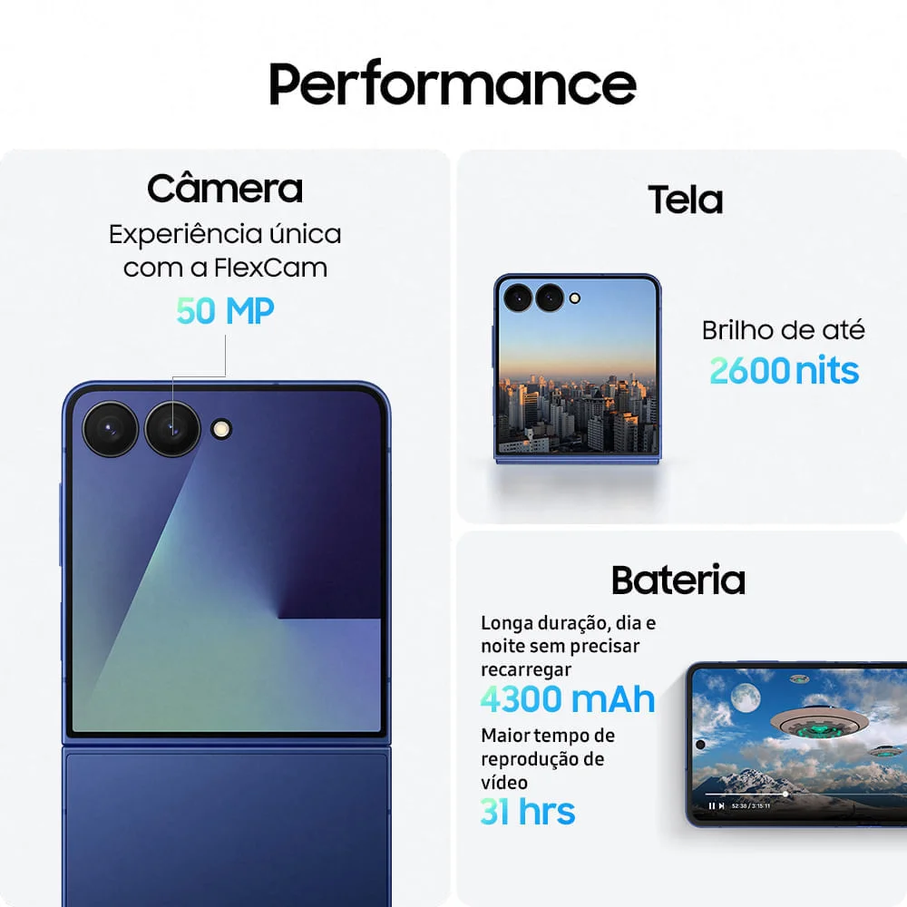 Celular Samsung Galaxy Z Flip7 5g, 512gb, 12gb Ram, 6.9”, Câmera Dupla 50mp, Galaxy Ai - Azul