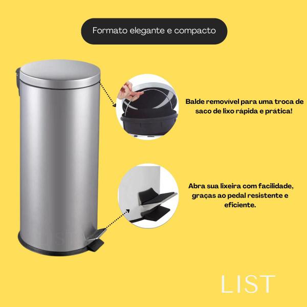 **Capacidade Generosa:** Com 30 litros de capacidade, esta lixeira atende às necessidades do seu espaço, mantendo o ambiente organizado e livre de resíduos.