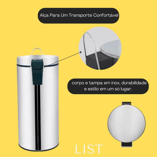 **Cesto Removível:** Facilita a limpeza e a troca do saco de lixo, garantindo praticidade no dia a dia.