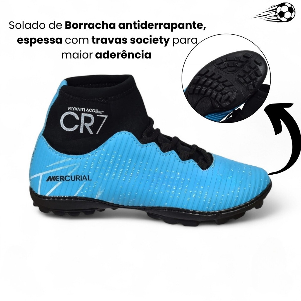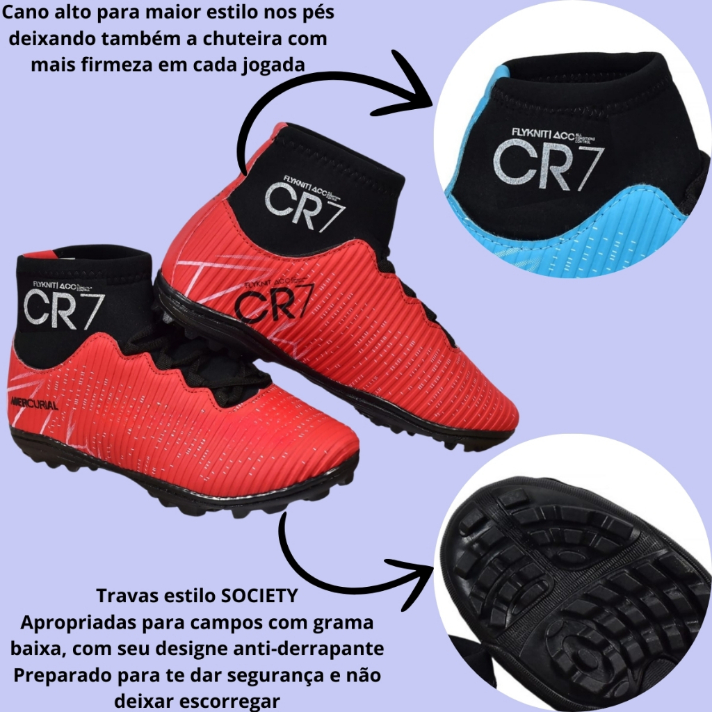 CHUTEIRA SOCIETY DE CAMPO SINTETICO CANO ALTO PROFISSIONAL CR7 DE QUALIDADE