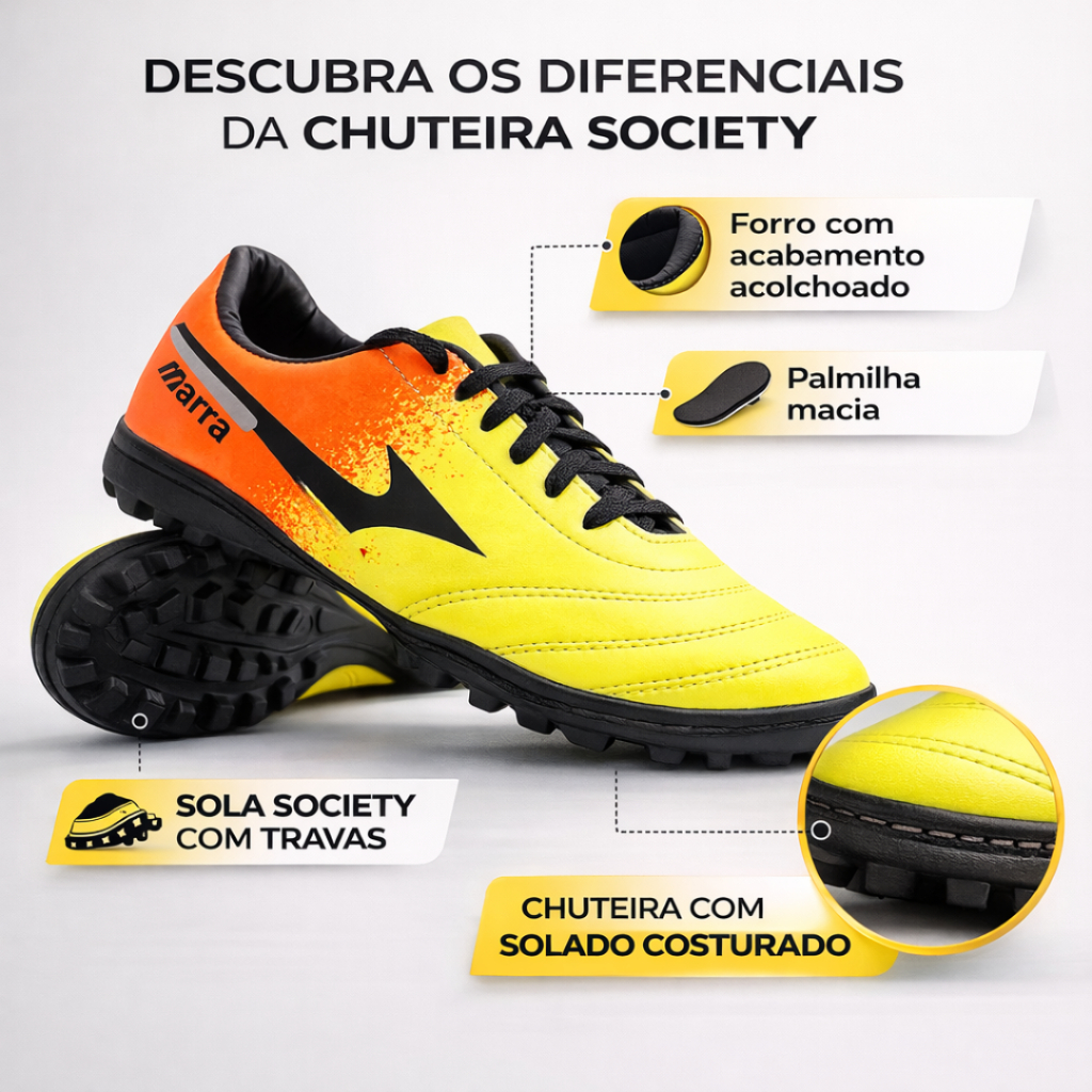 ✔ Solado Society antiderrapante – aderência poderosa no sintético