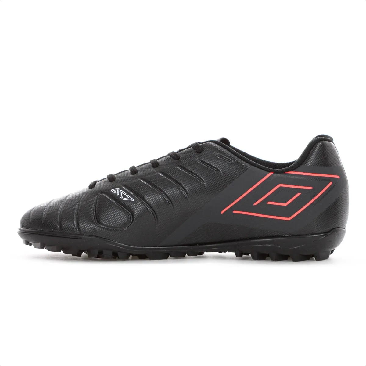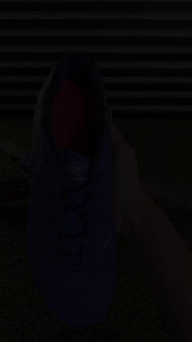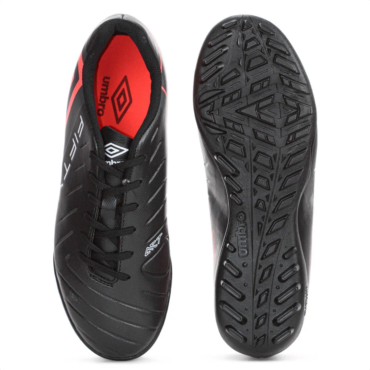 Detalhes: Visual bicolor moderno, cadarço descentralizado para melhor ajuste, boca do calçado deslocada para o lado externo, priorizando o área de chute sem sobreposição dos cadarços e símbolo Umbro nas laterais