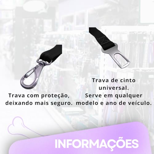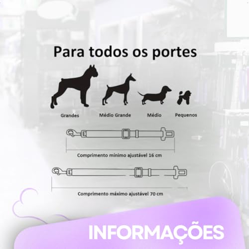 Ajuste Personalizado: Com regulagem de comprimento de 16cm a 70cm, adequa-se perfeitamente ao tamanho do seu pet, garantindo que ele fique seguro sem danificar o interior do seu carro.