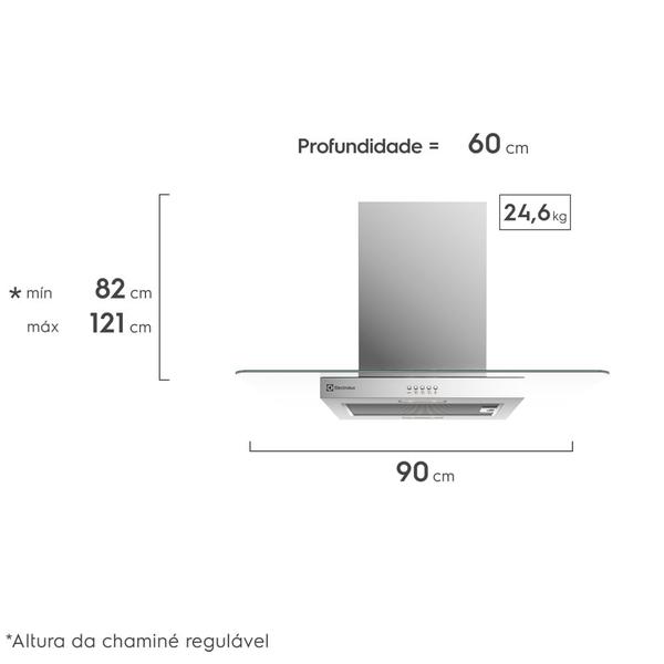 - Altura da Instalação81,5 - 121,5 cmConteúdo da Embalagem1 x corpo da coifa, 2 x chamines, 2x filtro de carvão ativado; 1x duto metálico 1,5m, Manual de instruçõesCorInox, PrataDimensões do Produto60 cm x 90 cm x 81,5 - 121,5 cmDimensões do Produto com Emb