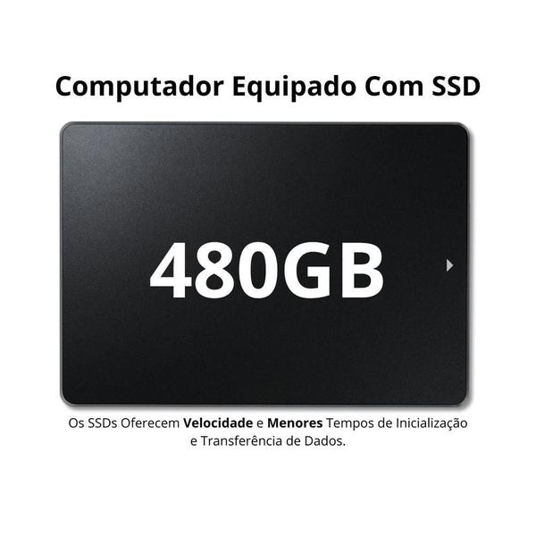 Armazenamento SSD 480GB: Mais rápido e com espaço suficiente para armazenar arquivos importantes.