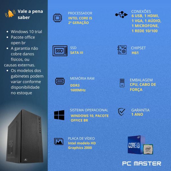 PC Computador CPU Intel Core i5 16GB Memória ram SSD 480GB - PC Master