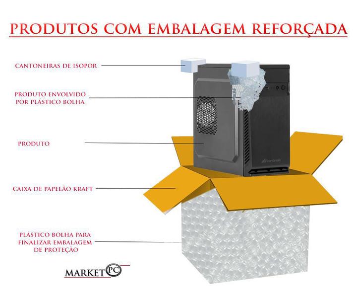 Gabinete: padrão atx 1 baia Conexões: 2x USB 2.0 / 2x Áudio (1 mic/ 1 audio)