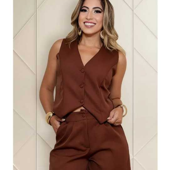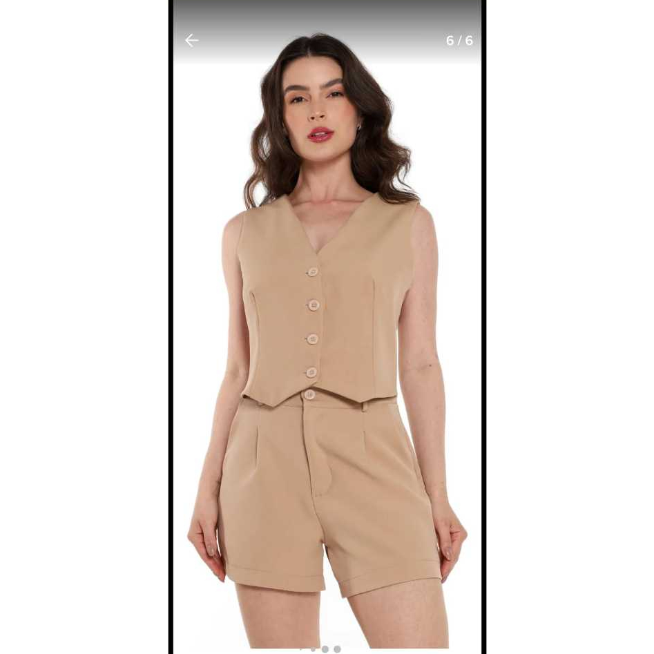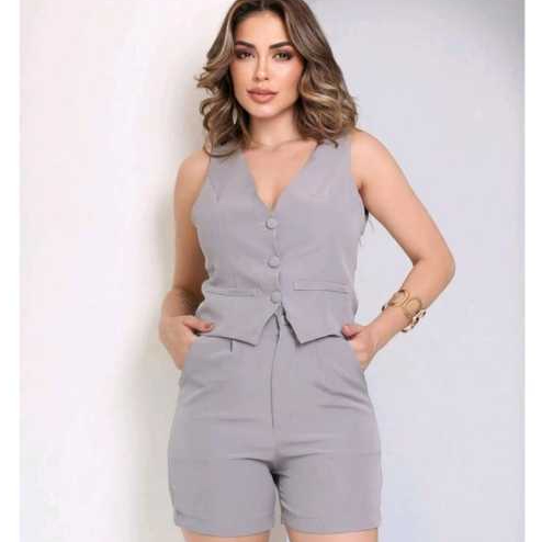 Composto por short de alfaiataria com caimento perfeito e colete com fechamento em botão, ele é ideal para montar produções chiques e confortáveis para diversas ocasiões.