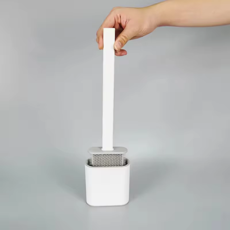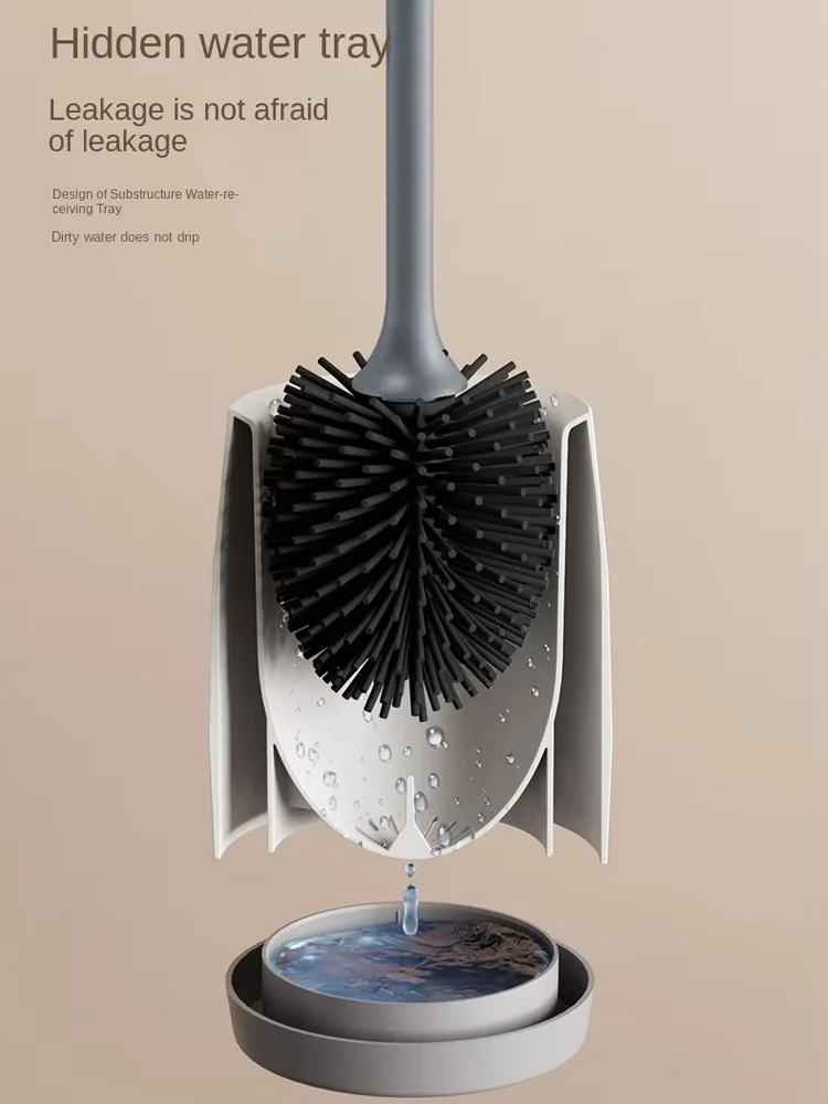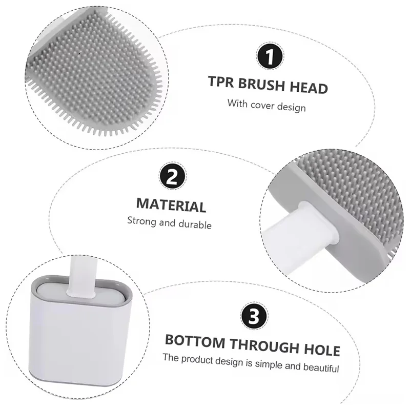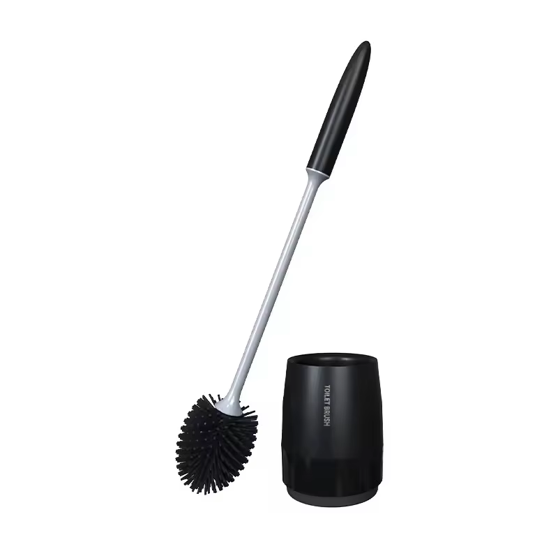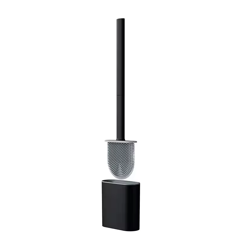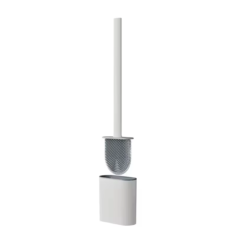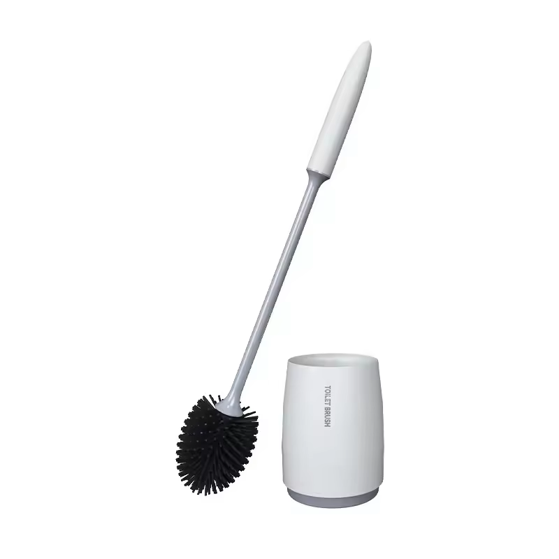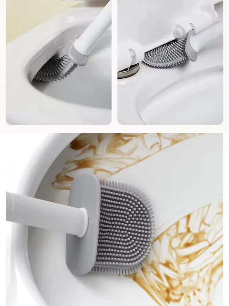 Conjunto de escova de vaso sanitário em formato de rugby, alça longa, silicone macio, limpeza profunda, antiarranhões, cabelo antiaderente