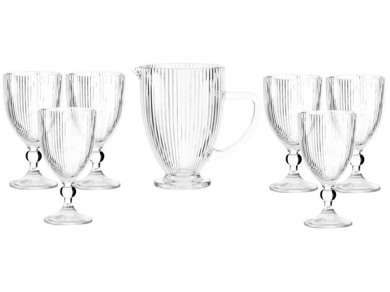 A Haus Concept apresenta o conjunto de jarra e taças Caneladas. Ideal para servir diversos tipos de bebidas tanto no uso diário, como em ocasiões especiais.