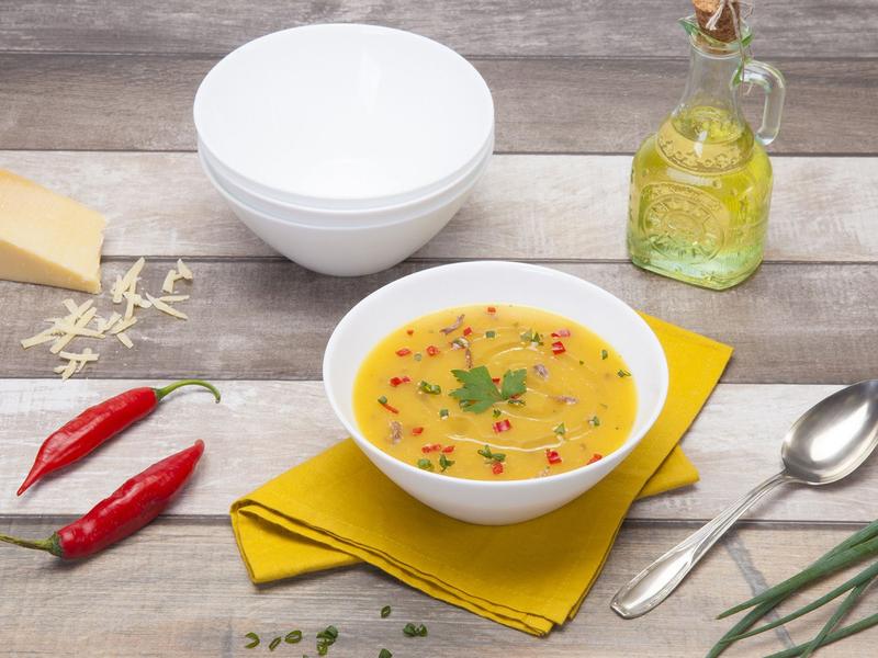 Este conjunto de tigelas Marinex Opaline Blanc é ideal para servir petiscos e principalmente aquelas ocasiões que você faz um festival de caldos e convida os amigos. Feito em vidro, com acabamento na cor branca, ele conta com a capacidade de 840ml. Nesta embalagem são 04 peças para você arrasar na apresentação mostrando charme. Ele vai ao lava-louça, ao micro-ondas e ao freezer. Mais um utensílio de resistência e elegância para completar na sua casa.