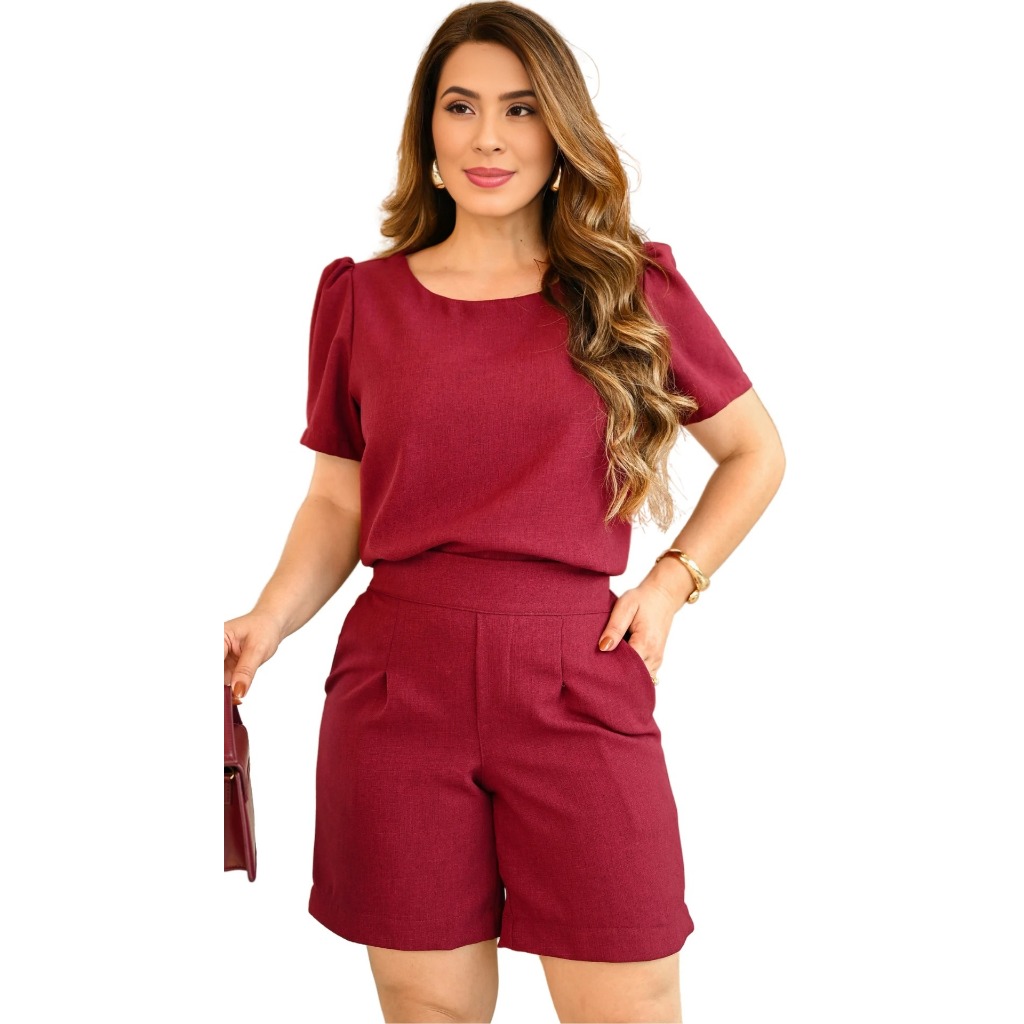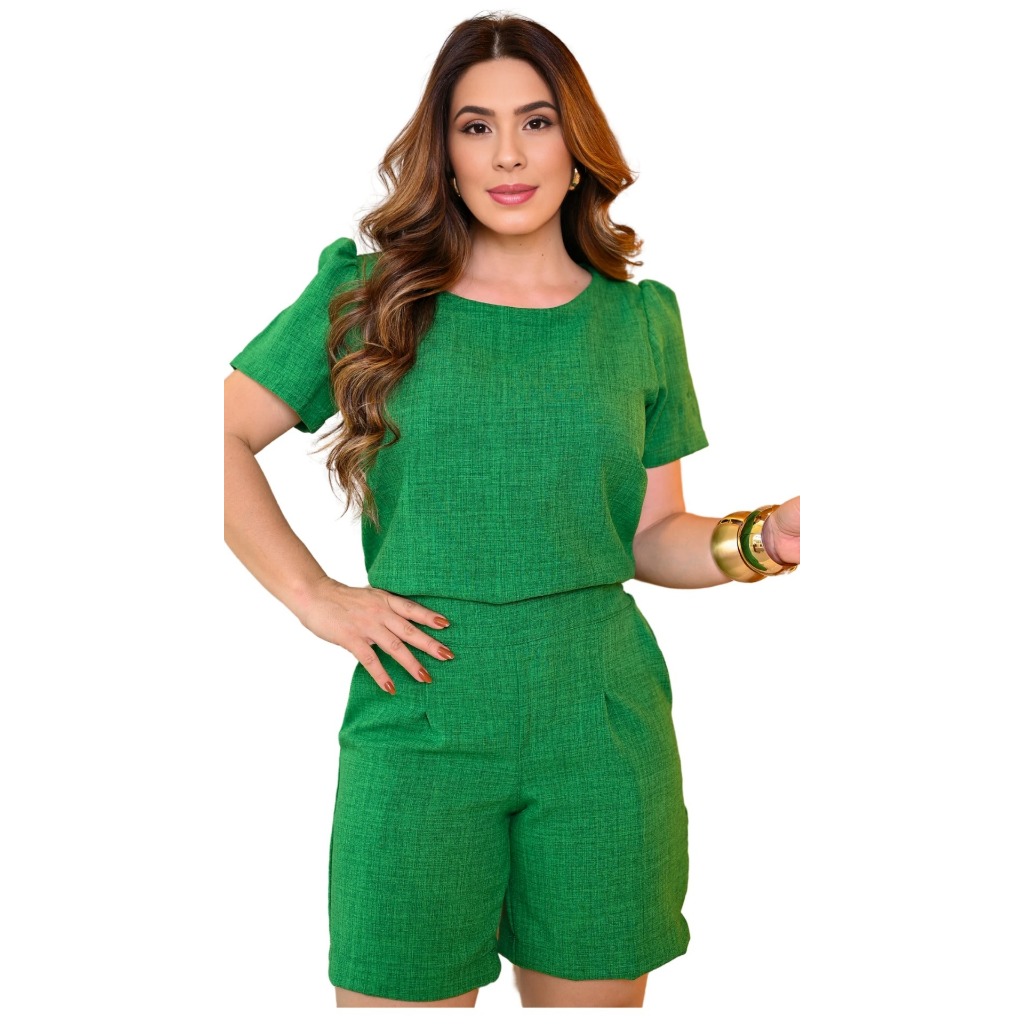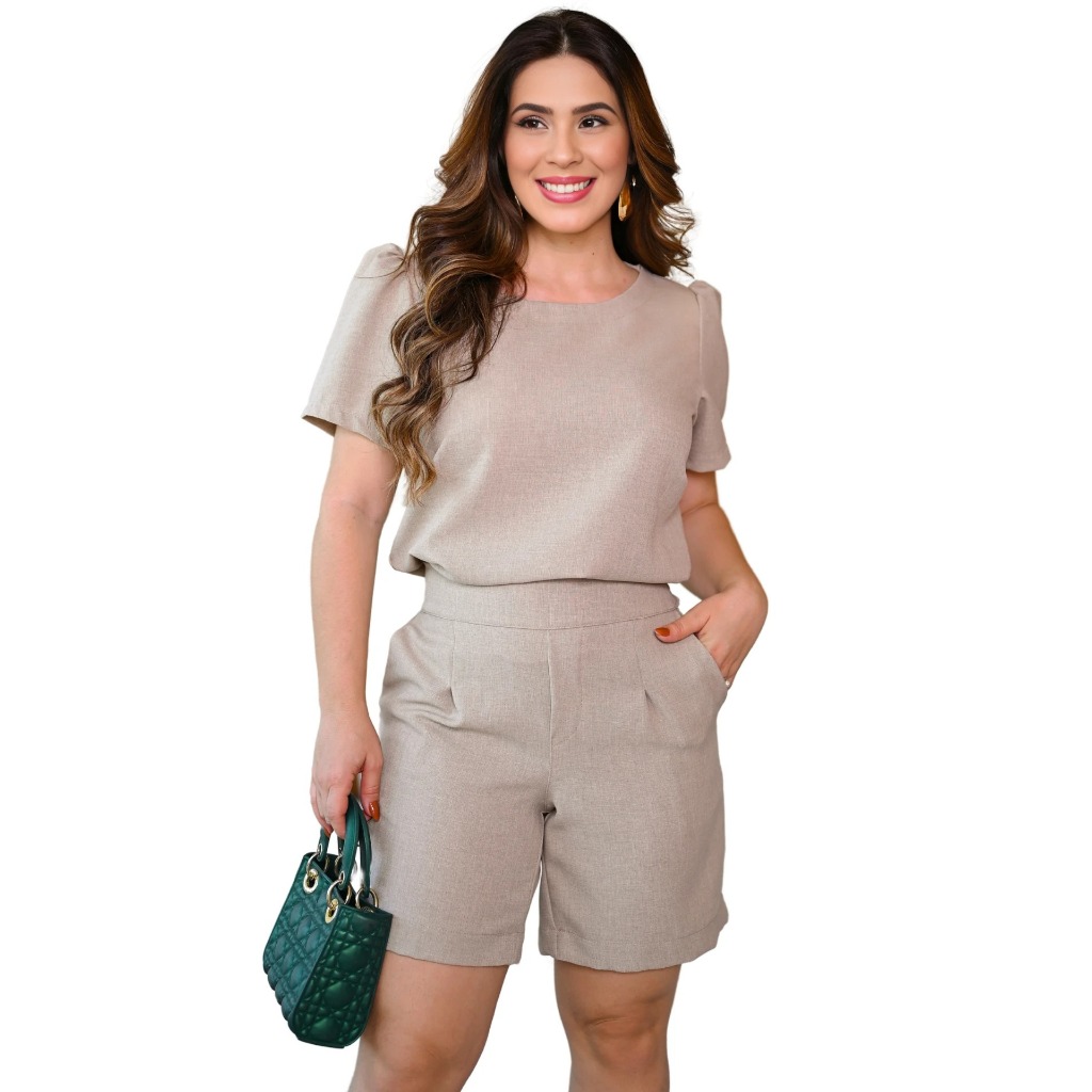 Conjunto Feminino Bermuda Short Em Linho Cores Moda Verão 2025 Roupa Feminina Elegante Oferta Especial