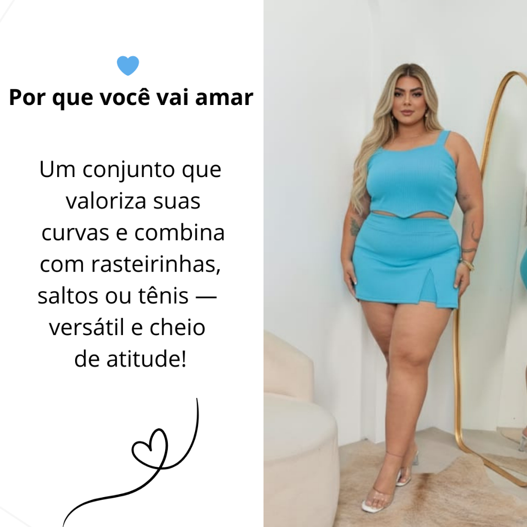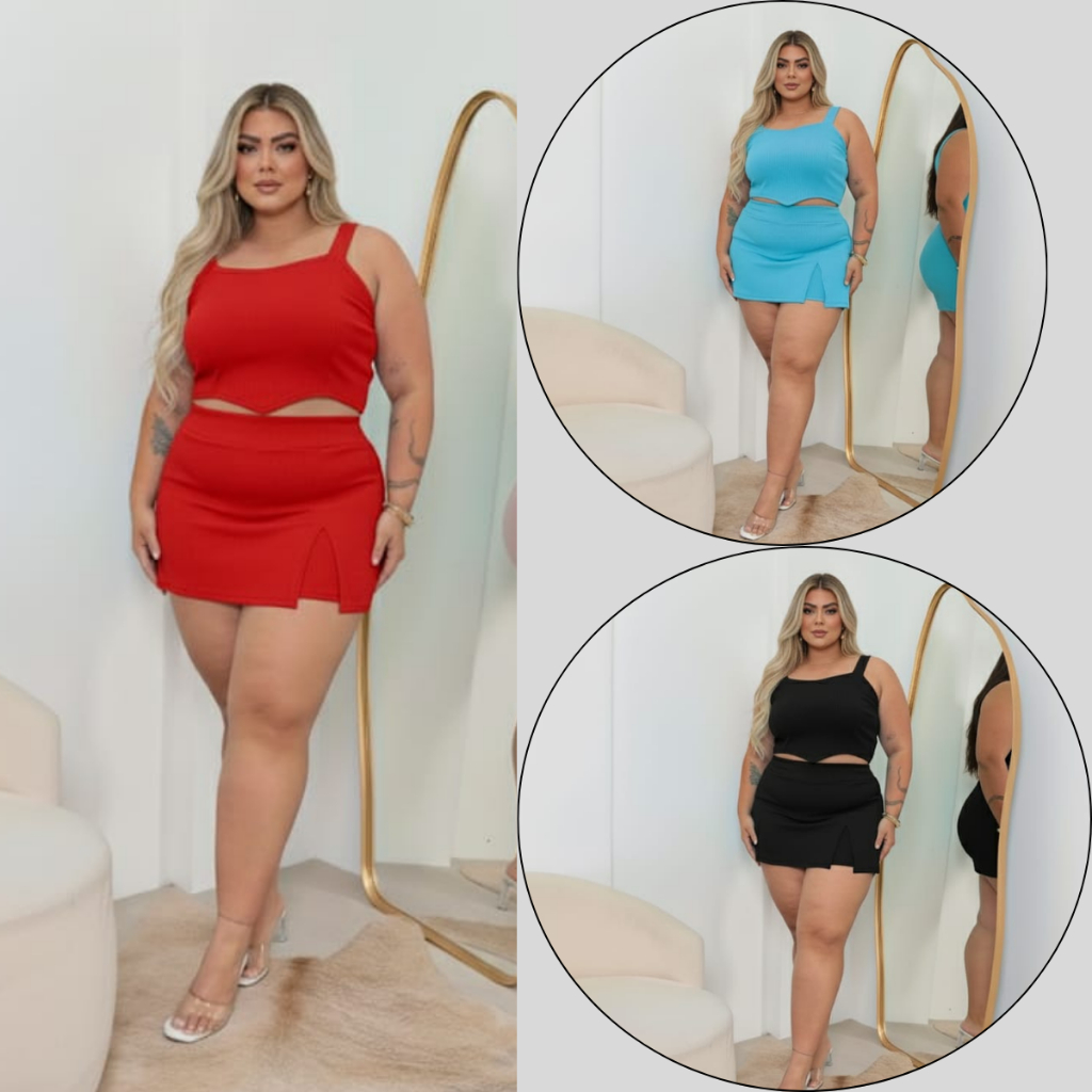 Conjunto Feminino Blusa Cropped + Short Saia Plus Size