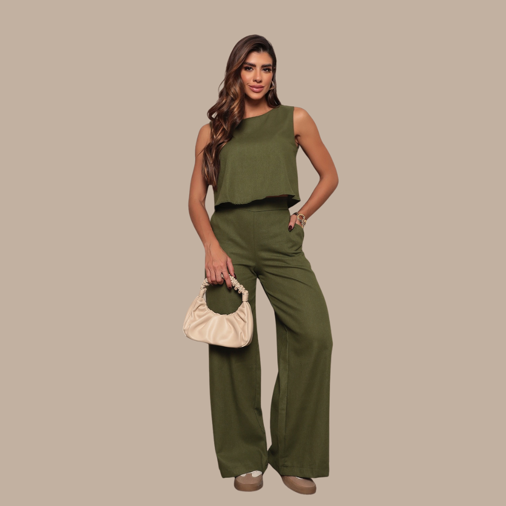 Descubra a combinação perfeita entre estilo e bem-estar com nosso conjunto feminino em linho, composto por uma blusa charmosa e uma calça pantalona de caimento impecável. Ideal para mulheres que buscam uma moda confortável, versátil e sofisticada para o dia a dia ou ocasiões especiais.