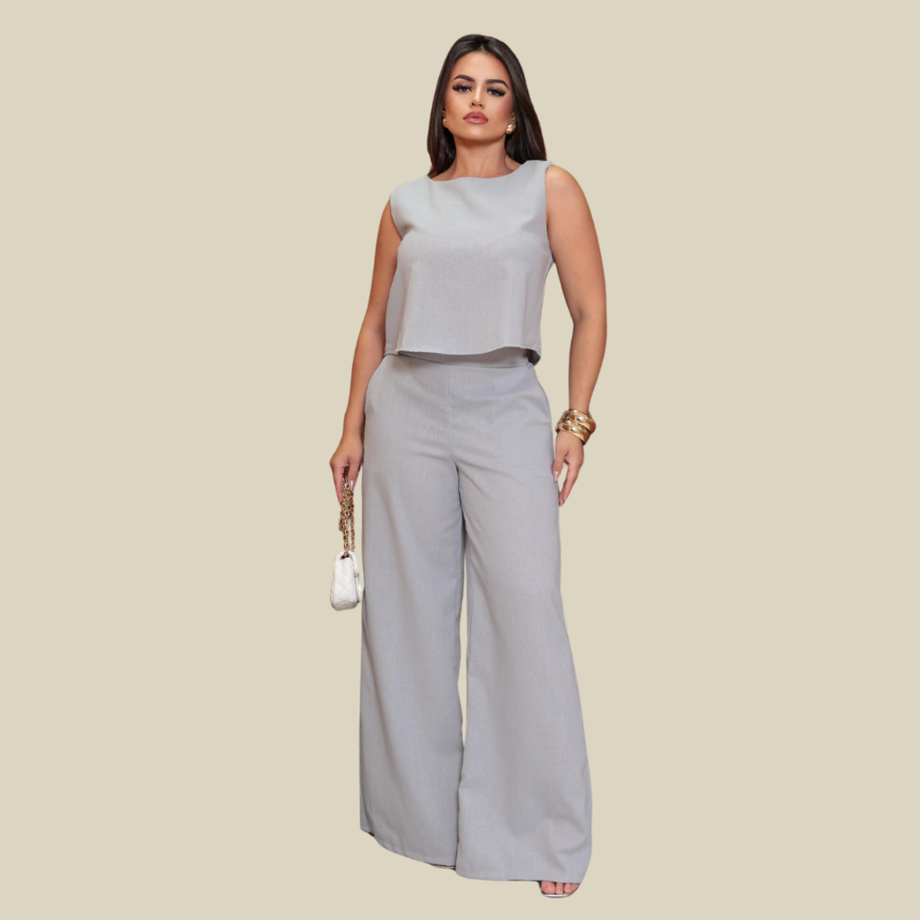 Conjunto Feminino Blusa e Calça Pantalona Casual Elegante.
