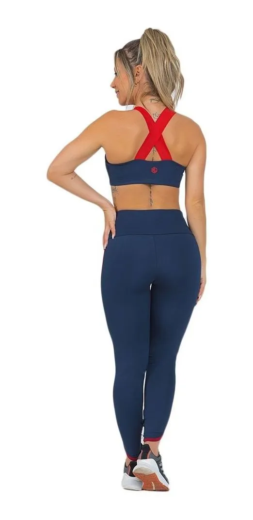 Conjunto Manalinda Fitness Top E Legging Azul Escuro