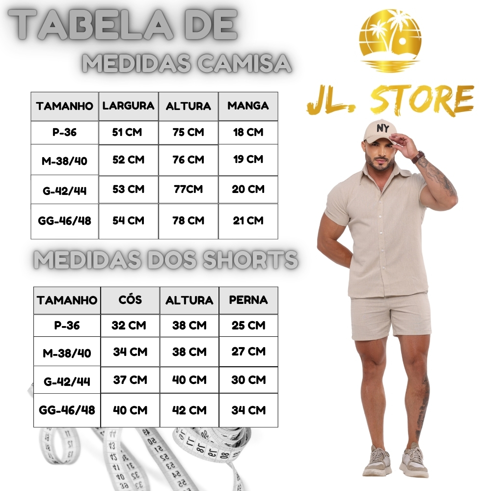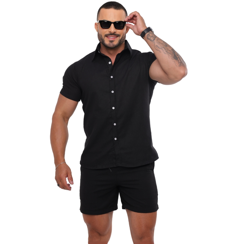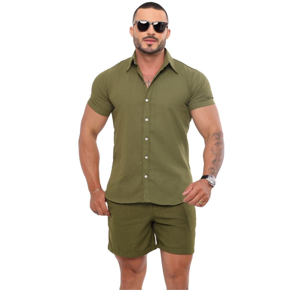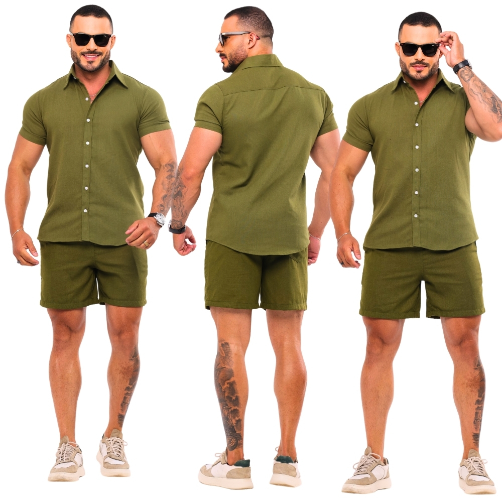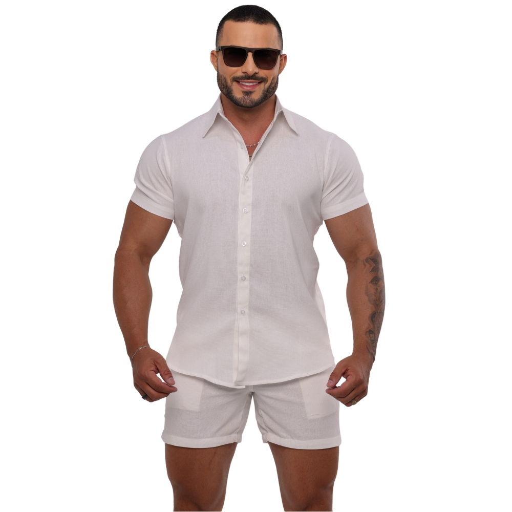 Conjunto Masculino Linho Camisa Shorts Mauricinho Premium Com Bolso