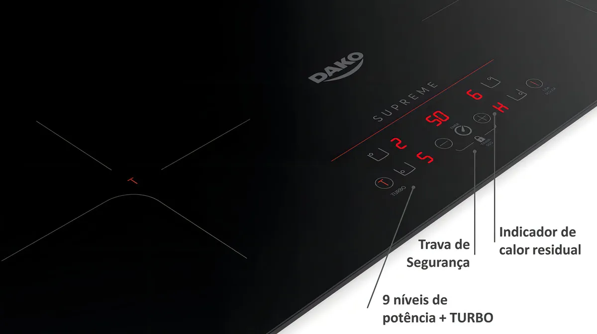 Cooktop de Indução 4 Bocas Preto com Trava de Segurança Dako Supreme