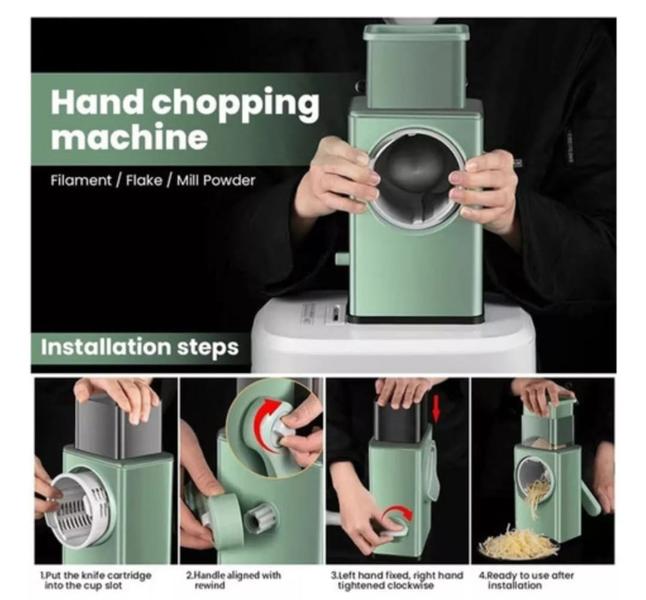 Este espetacular utensílio cozinha você poderá preparar receitas preferências rapidamente menos esforço, o conjunto inclui 3 slicer tipos de lâminas inoxidáveis e muito afiadas, os cilindros são fáceis de trocar e mecanismo de manivela muito fácil de operar e de fácil limpeza, contem empurradores alimentos (segurança), anel travamento base modelo sucção que trava na mesa ou pia fazendo com que a utilização fique ainda mais fácil.