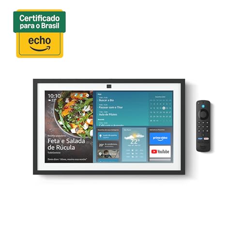 CONHEÇA O ECHO SHOW 15 - Um incrível smart display Full HD (1080p) de 15,6'' perfeito para sua cozinha, sempre pronto para te mostrar ainda mais. Use widgets personalizáveis para gerenciar suas tarefas e veja suas séries preferidas com a experiência Fire TV com som vibrante e potente. Faça chamadas de vídeo de alta qualidade com outros dispositivos Echo com 3x mais zoom e um campo de visão mais amplo.