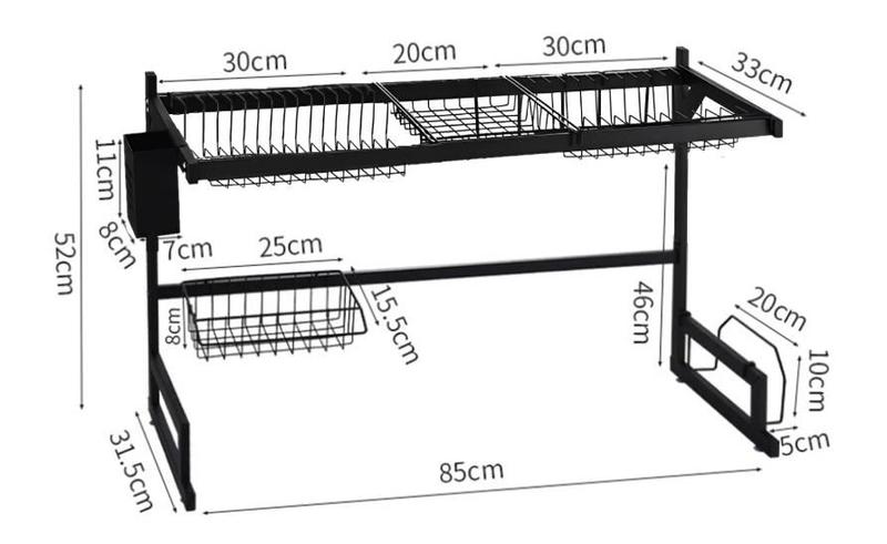 - AcessóriosPorta-copos, porta-talheres, suporte para tábua de corte, 6 ganchos multiuso, suporte exclusivo para detergente e pano de piaCapacidade de Pratos24Conteúdo da Embalagem1 Escorredor Suspenso Modular de 85cm (desmontado), 1 Manual de instruções pa