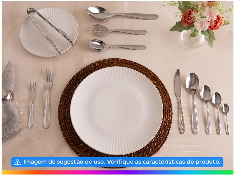 Ele é composto por 88 peças: 12 Colheres de mesa; 12 Garfos de mesa; 12 Facas para churrasco; 12 Colheres de chá; 12 Colheres de café; 12 Garfos para torta; 12 Colheres sobremesa; 1 Colher de arroz; 1 Colher de salada; 1 Garfo de salada; 1 Pegador para massa.