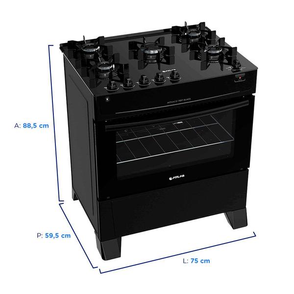 Para ter momentos agradáveis, práticos e funcionais na cozinha, a Atlas traz o fogão de piso Top Glass, Mônaco, de cinco bocas, a gás GLP. Bivolt ele possui acendimento automático, forno simples com capacidade de 86,5 litros e mesa de vidro que traz um visual sofisticado e mais praticidade para limpar. Os materiais de qualidade e acabamento robusto garantem a beleza e durabilidade do produto. Por ser neutro, na cor preta, ele combina com os demais itens do ambiente. Com certeza suas receitas ficarão bem mais saborosas!