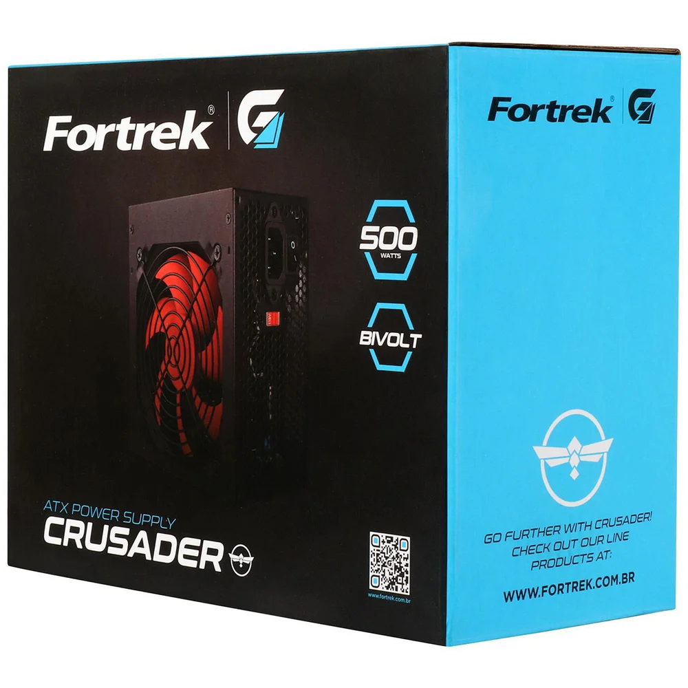 Fonte Atx Fortrek Crusader, 500w, Bivolt Manual, Cooler 120mm, Preto
