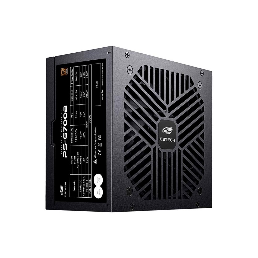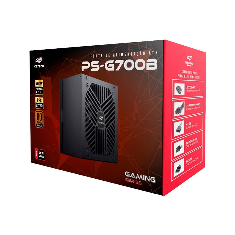 Fonte C3Tech Gaming 700W, 80 Plus Bronze, PFC Ativo, Bivolt, Preto - PS-G700B