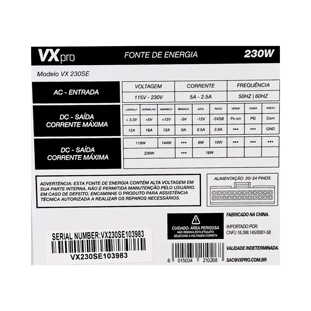 fonte de alimentação vxpro vx230se