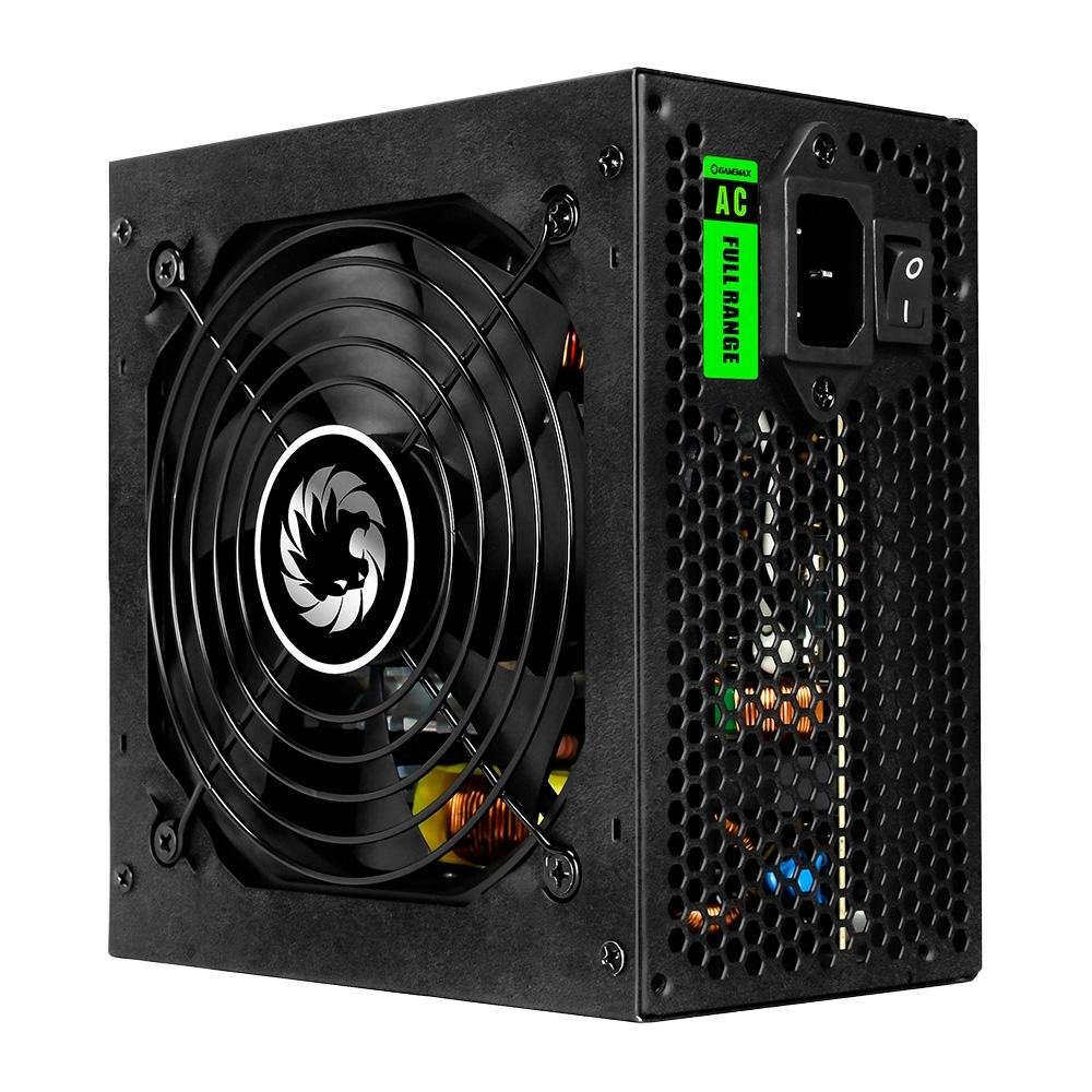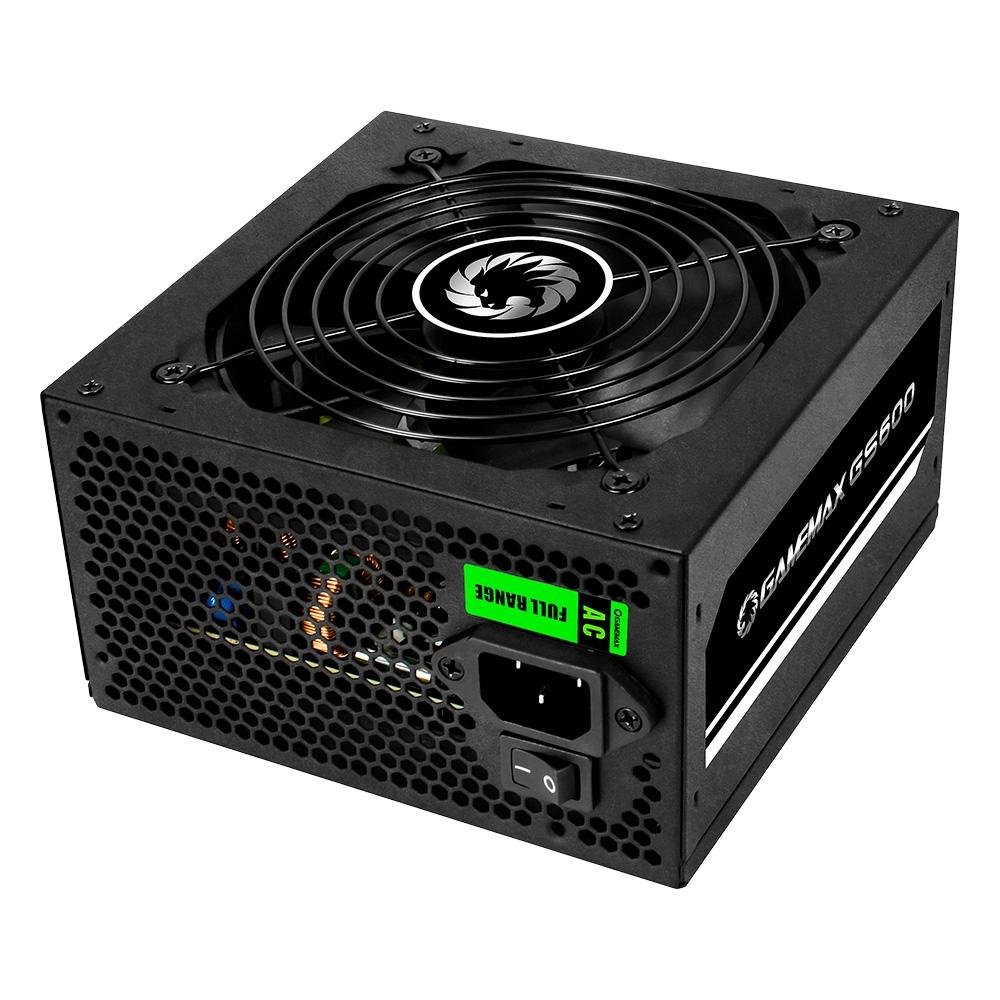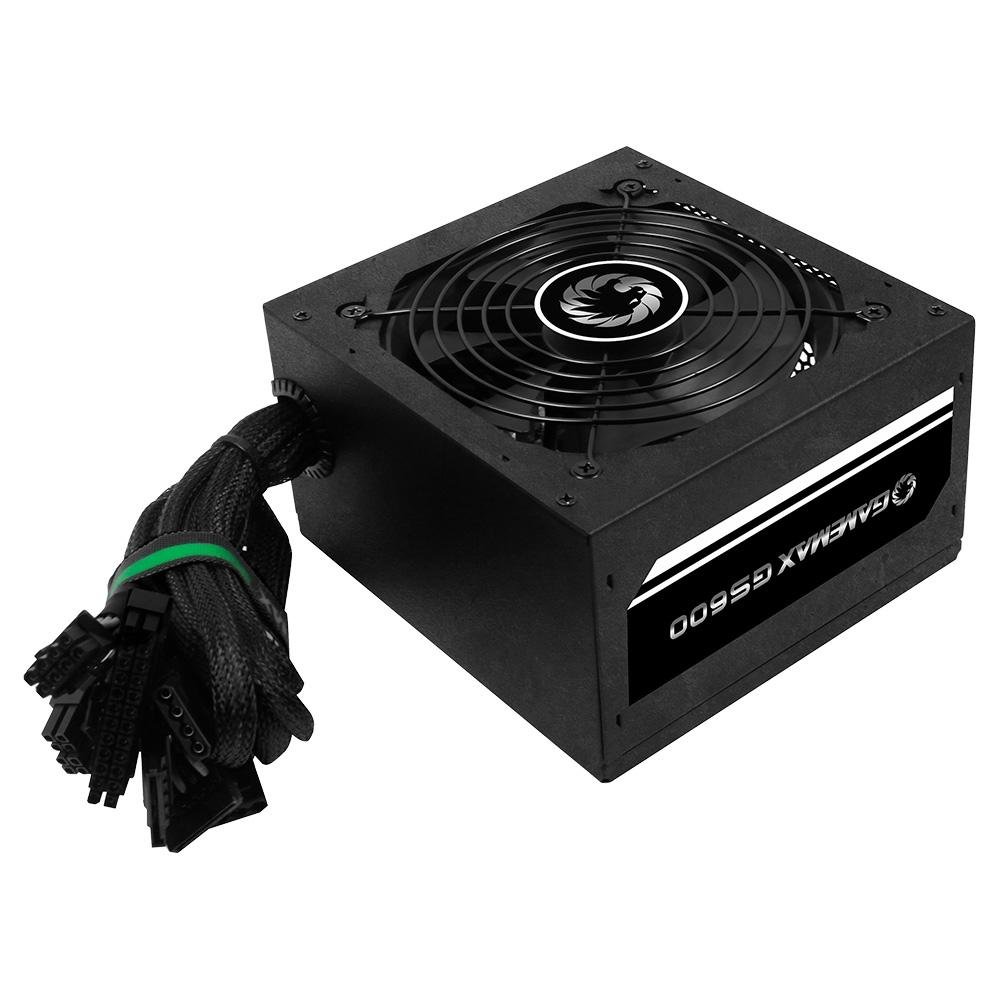 Fonte Gamemax GS600, 600W, 80 Plus White, PFC Ativo, Com Cabo, Preto - GS600