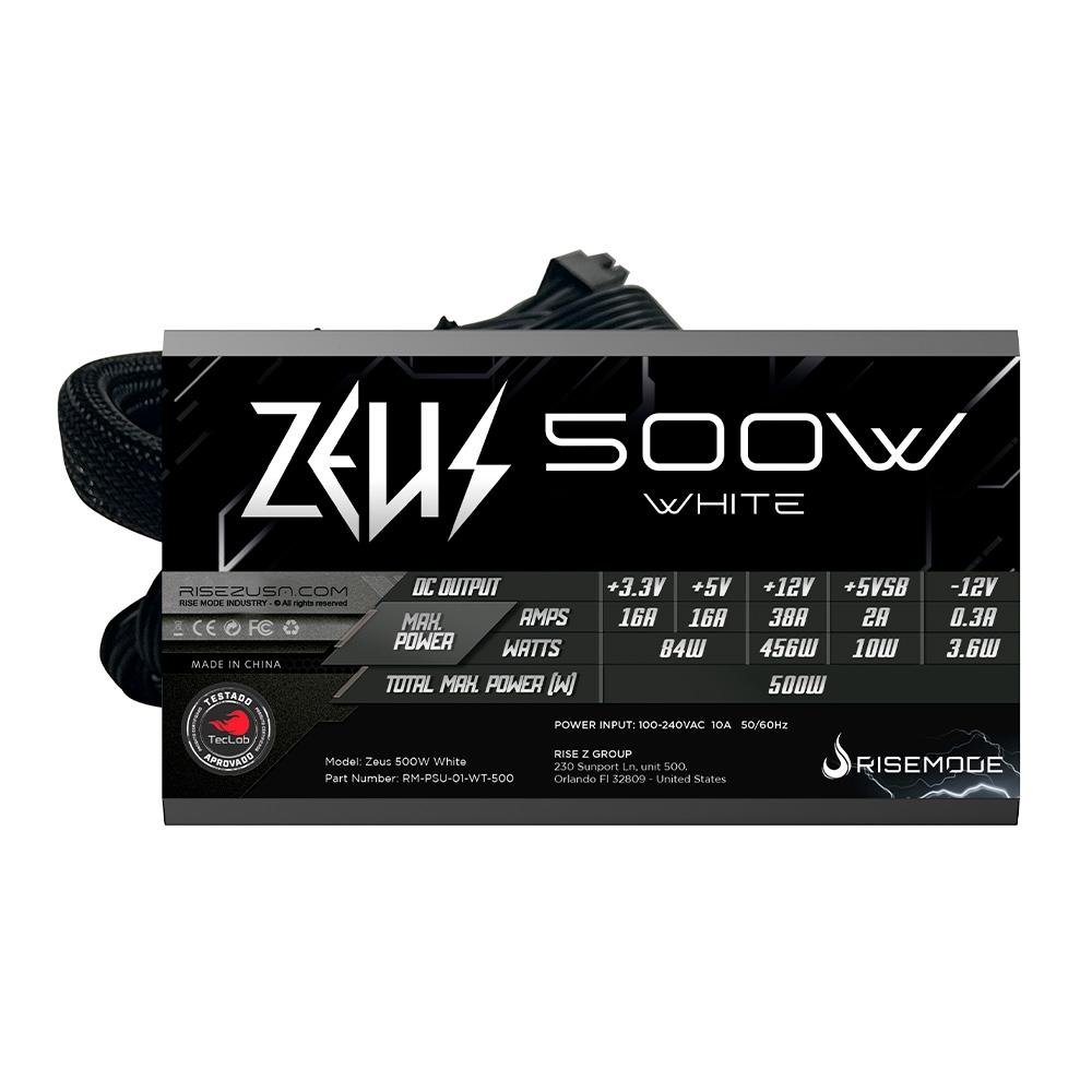 Fonte Gamer Rise Mode Zeus, 500W, PFC Ativo, Preto - RM-PSU-01-WT-500