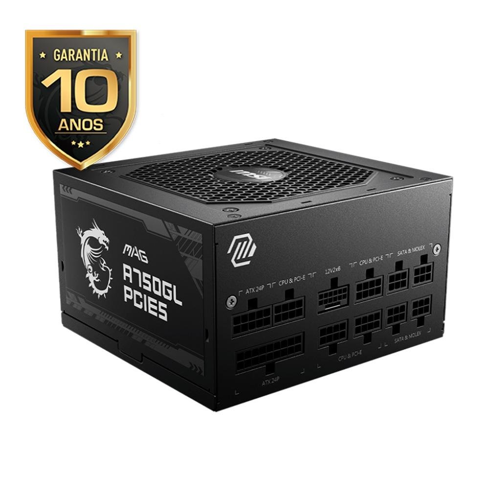 Fonte MSI MAG A750GL, 750W, 80 Plus Gold, Modular, PFC Ativo, Com Cabo, Preto