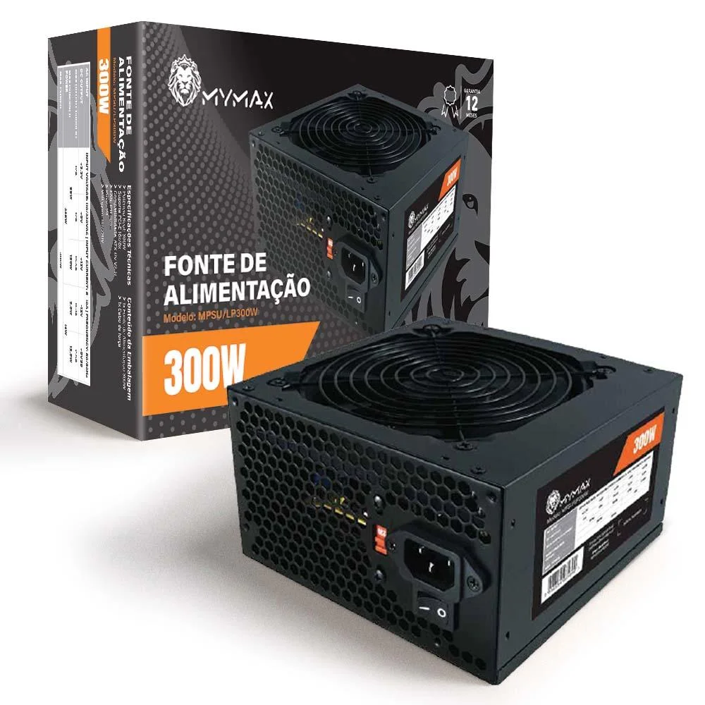 Fonte Mymax ATX, 300W Real, Bivolt Manual, Com Cabo, Preto - MPSU/LP300W
