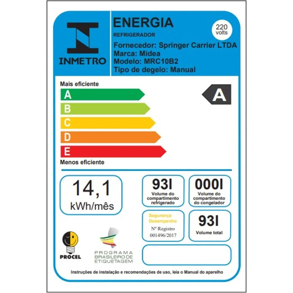 Frigobar Midea, 93L, Classe A, 220V - Mrc10b2