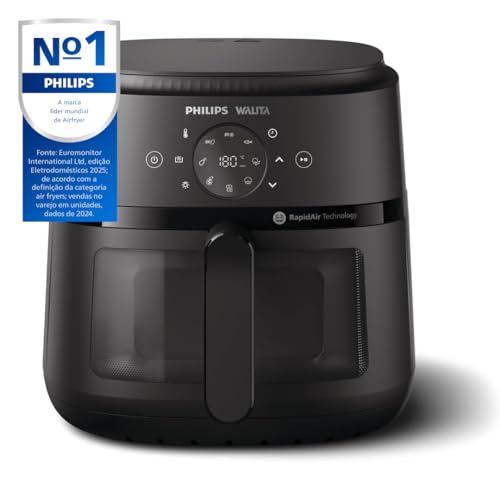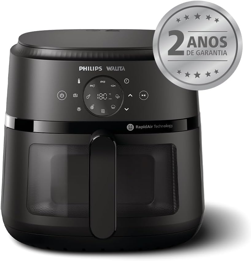 Airfryer Série 2000 XL Digital Philips Walita, com grelha removível: fácil de limpar e mais espaço para preparar as suas receitas! A única com Tecnologia RapidAir patenteada que garante o fluxo de ar por todos os lados, o cozimento mais rápido e uniforme, deixando os alimentos macios por dentro e crocantes por fora. São 1700W e capacidade total e útil de 6,2L (1,2kg). Com janela e iluminação interna, para acompanhar o preparo das suas receitas! Com display digital para ajuste de temperatura de 80 a 200 graus, timer de 60 minutos, 7 funções pré-definidas e desligamento automático. Fácil de lavar: Com grelha removível antiaderente e outras peças removíveis, preparadas para a máquina de lavar. Inspire-se com + de 500 receitas no App HomeID