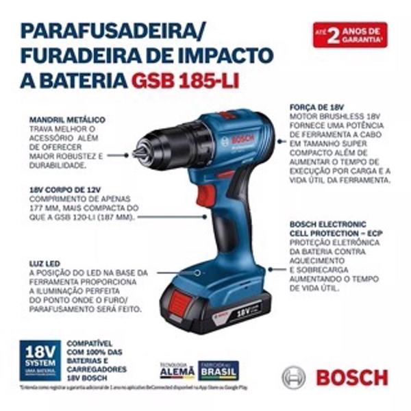 1 - Furadeira Parafusadeira de Impacto Bosch GSB 185-Li
