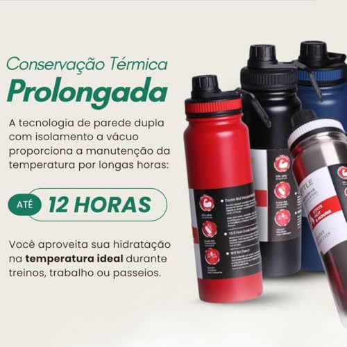 Fabricada em aço inoxidável de alta qualidade com parede dupla e isolamento a vácuo, ela mantém líquidos quentes ou frios por horas. A alça resistente facilita o transporte, enquanto o sistema antivazamento garante segurança extra durante o uso.