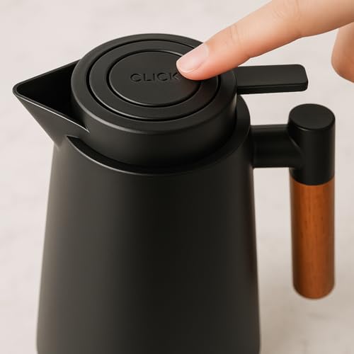Garrafa Térmica 1L Premium – Design Elegante em Preto com Cabo de Madeira | Ideal para Café, Chá e Bebidas Quentes | Mesa Posta Sofisticada