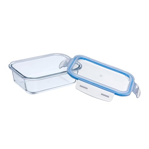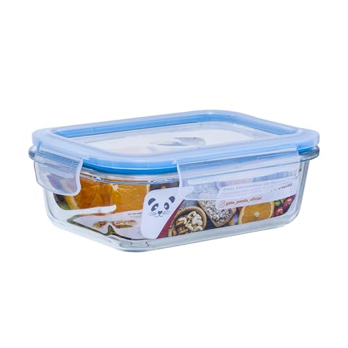 Gato Panda KIT 5 Potes de Vidro Retangular com Tampa Hermética 640ml Branco ou Azul