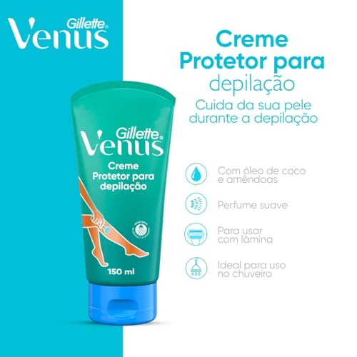 Gillette Venus Creme Protetor para Depilação com Óleo de Amêndoas, Depilação Corporal, 150mL