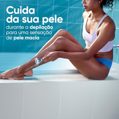 O novo creme para depilação Gillette Venus cuida da sua pele durante a depilação com lâmina, protegendo a pele e proporcionando uma sensação de maciez e suavidade. Sua fórmula com óleo de amêndoas, conhecido por suas propriedades hidratantes, age amolecendo o pelo e facilitando o deslizar da lâmina para uma depilação rente. Feito para ser usado no chuveiro pois se mantem na pele mesmo quando molhada, garantindo toda proteção. Possui aplicação semi transparente para mais visibilidade. Para melhorar a experiência, experimente usar junto com os aparelhos de depilação Gillette Venus Suave.