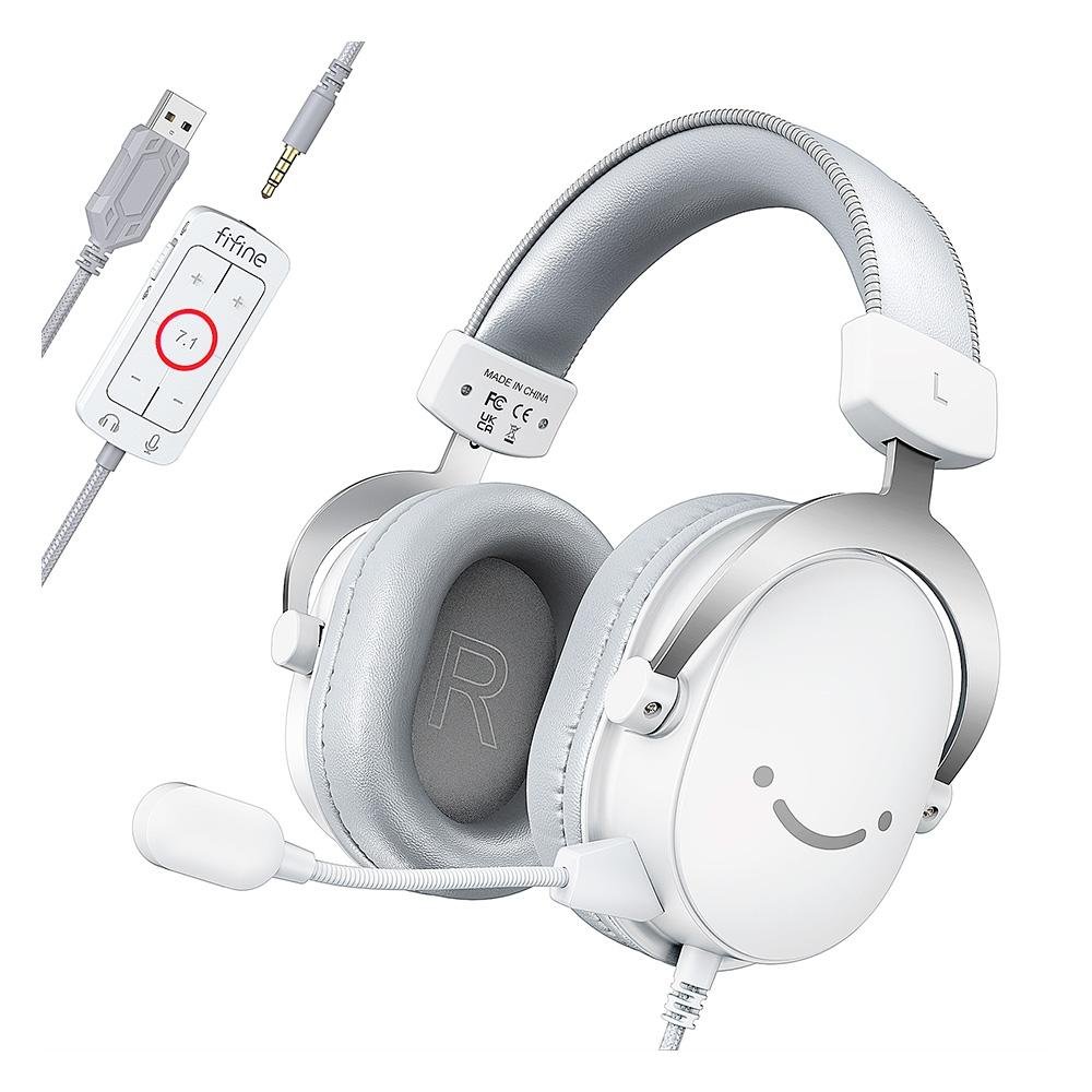 Headset Gamer Fifine H9, Som Surround 7.1, USB, Console e PC, Branco - H9W