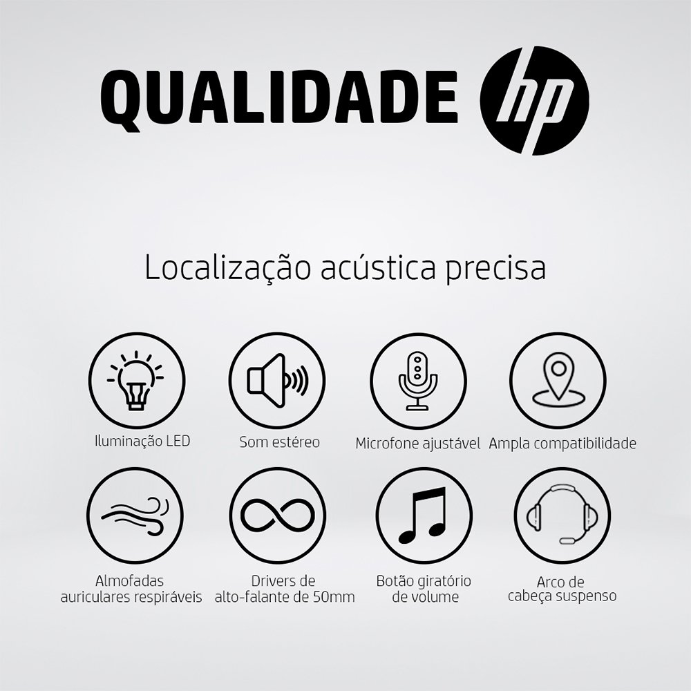 Headset Gamer HP H320, LED, Drivers 50mm - 8AA13AAUUF