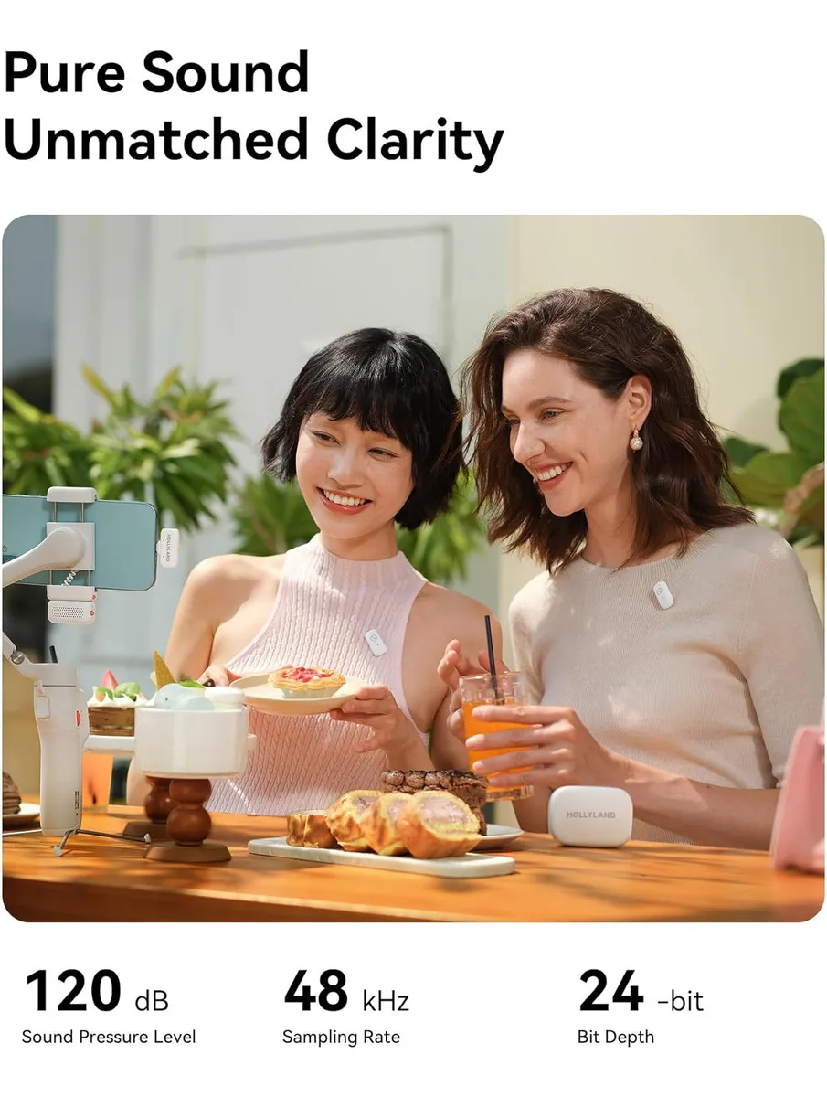 -48 kHz/24 bits com qualidade de estúdio: lida com ruídos SPL repentinos de 120 dB sem distorção, capturando agudos nítidos e graves profundos, ideal para vloggers, streamers e criadores que usam um mini microfone para áudio cinematográfico.