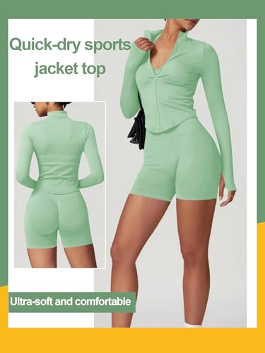 Jaqueta feminina leve com zíper completo com orifícios para o polegar para treino slim fit manga longa roupas de tênis